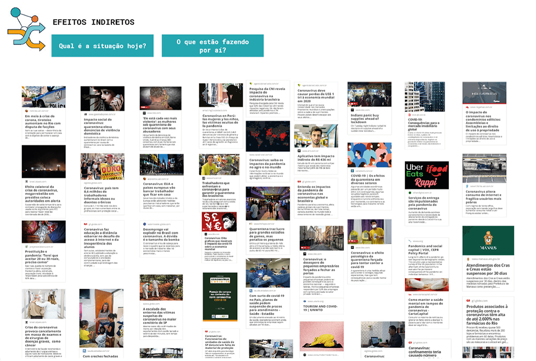 Tendo como base as experiências do Inova_MPRJ em relação a métodos de trabalho colaborativo e ferramentas de comunicação e gestão, formaram-se times interdisciplinares em torno de cinco dimensões de atuação: (1) medidas de distanciamento social; (2) gestão das redes de assistência à saúde; (3) testagem e vigilância epidemiológica; (4) efeitos indiretos da crise e de suas medidas de contenção; e (5) articulação.