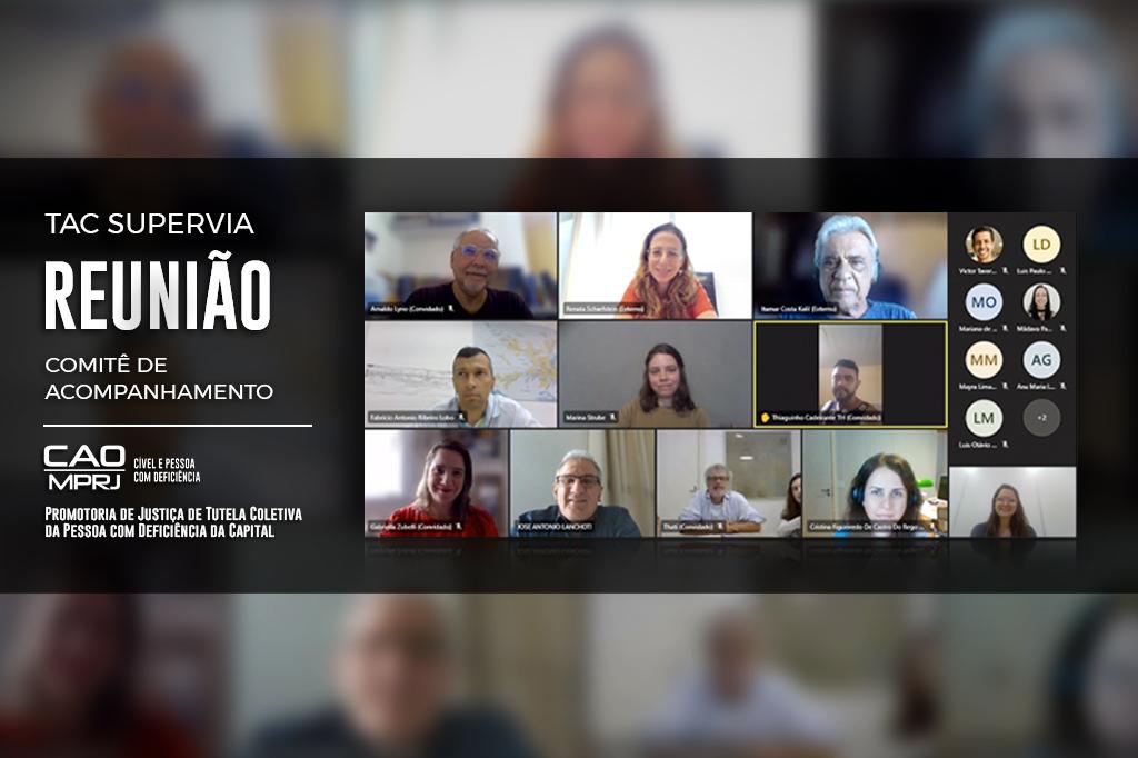 A reunião contou com as presenças da coordenadora do Centro de Apoio Operacional das Promotorias de Justiça Cíveis e Pessoa com Deficiência (CAO Cível e Pessoa com Deficiência/MPRJ), Renata Scharfstein, e da titular da Promotoria de Justiça de Tutela Coletiva da Pessoa com Deficiência da Capital, Cristina do Rêgo Monteiro, que monitora e fiscaliza o cumprimento das obrigações do Termo. Também participaram do encontro representantes da Supervia e da Arqhos, e a equipe de arquitetura do Grupo de Apoio Técnico Especializado (GATE/MPRJ), além dos demais integrantes do Comitê de Acompanhamento, responsável pelo Controle Social. Além de integrarem o Comitê arquitetos e especialistas na área de acessibilidade, também há a participação da presidente do CEPDE (Conselho Estadual da Pessoa Com Deficiência) e de pessoa com deficiência que é usuária da malha ferroviária.