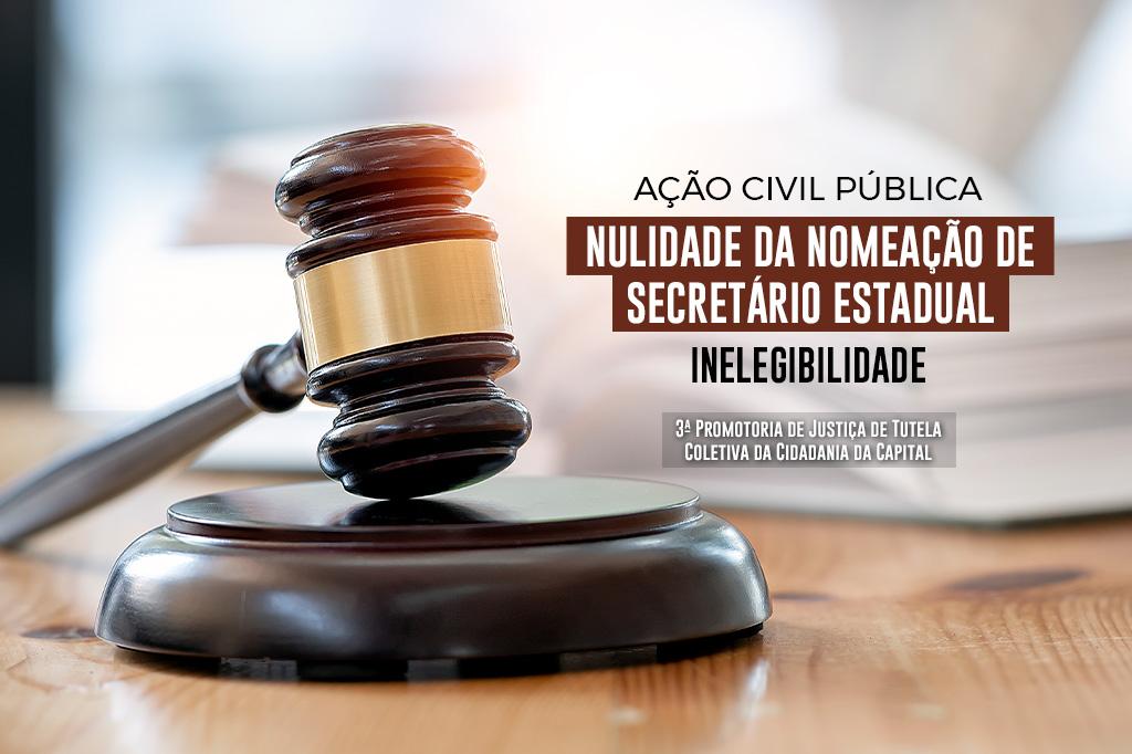 O Ministério Público do Estado do Rio de Janeiro (MPRJ) ajuizou ação civil pública para anular a nomeação de André Luis Dantas Ferreira, conhecido como André Moura, ao cargo de Secretário Extraordinário de Representação do Governo do Rio em Brasília. O pedido da 3ª Promotoria de Justiça de Tutela Coletiva da Cidadania da Capital ocorre porque ele está inelegível em razão de condenação prévia.