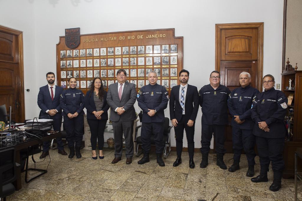 Pela Secretaria de Estado de Polícia Militar participaram da reunião os coronéis Luciano Carvalho, subsecretário-geral da Polícia Militar, Gabryela Reis, chefe de gabinete do Comando-Geral, Ranulfo Brandão, subsecretário de gestão operacional e Lenise Durão, diretora-geral de Saúde.