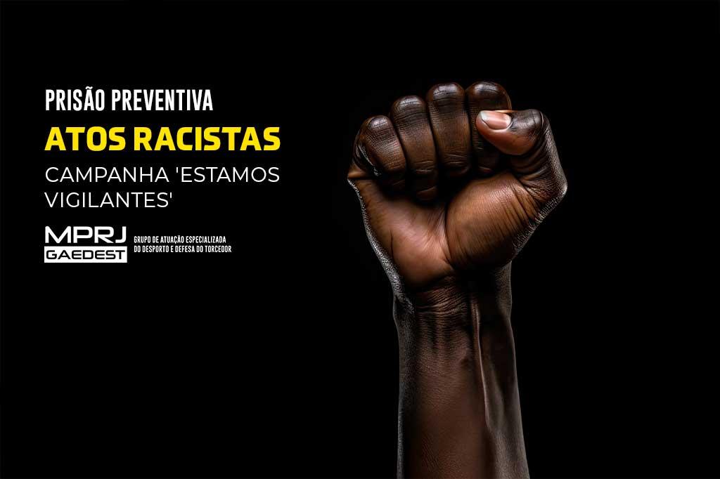 Veiculada na imprensa, nas redes sociais e nos estádios, a campanha “Estamos Vigilantes” visa estimular que todas as pessoas que observem possíveis casos de racismo nas praças esportivas denunciem os fatos às autoridades competentes. Promotores de Justiça do Grupo de Atuação Especializada do Desporto e Defesa do Torcedor (GAEDEST/MPRJ) estarão presentes em todos os jogos nos estádios cariocas, para monitorar as arquibancadas e atuar em casos de flagrante ou denúncia de atos racistas e xenofóbicos.