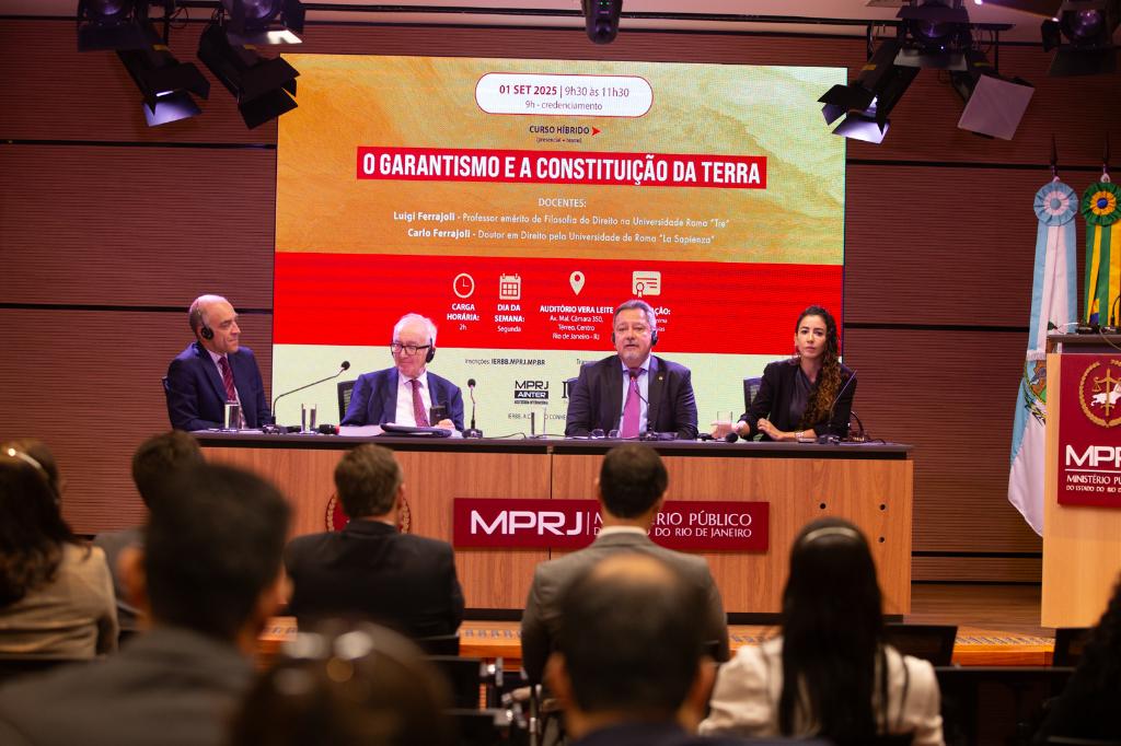 O Ministério Público do Estado do Rio de Janeiro (MPRJ), por meio da Assessoria Internacional e do Instituto de Educação Roberto Bernardes Barroso (IERBB/MPRJ), promoveu o curso “O Garantismo e a Constituição da Terra”, que contou com a participação dos juristas Luigi Ferrajoli, professor emérito de Filosofia do Direito da Universidade Roma “Tre”, e Carlo Ferrajoli, doutor em Direito pela Universidade de Roma “La Sapienza”.