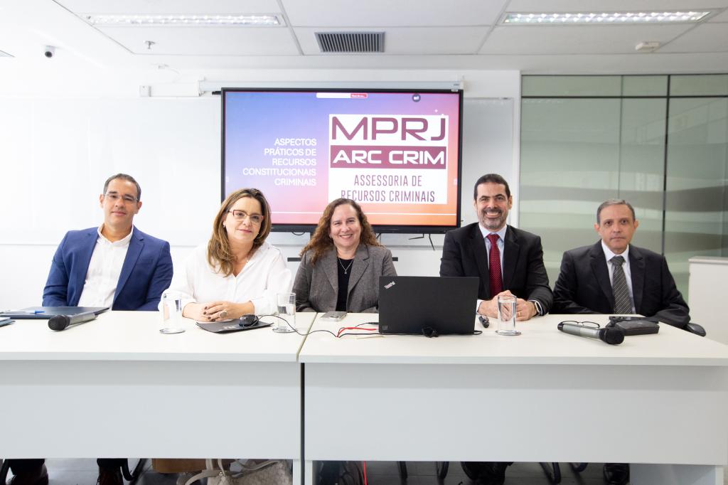 A mesa de abertura contou com a participação da subprocuradora-geral de Justiça de Recursos Constitucionais, Inês Andreiuolo; da assessora-chefe da Assessoria de Recursos Constitucionais Criminais, Somaine Patrícia Cerruti Lisboa; e dos promotores de Justiça do MPRJ, assistentes da mesma Assessoria, Eduardo Morais Martins, Pedro Paulo Marinho de Barros e Fábio Mendes Muniz.