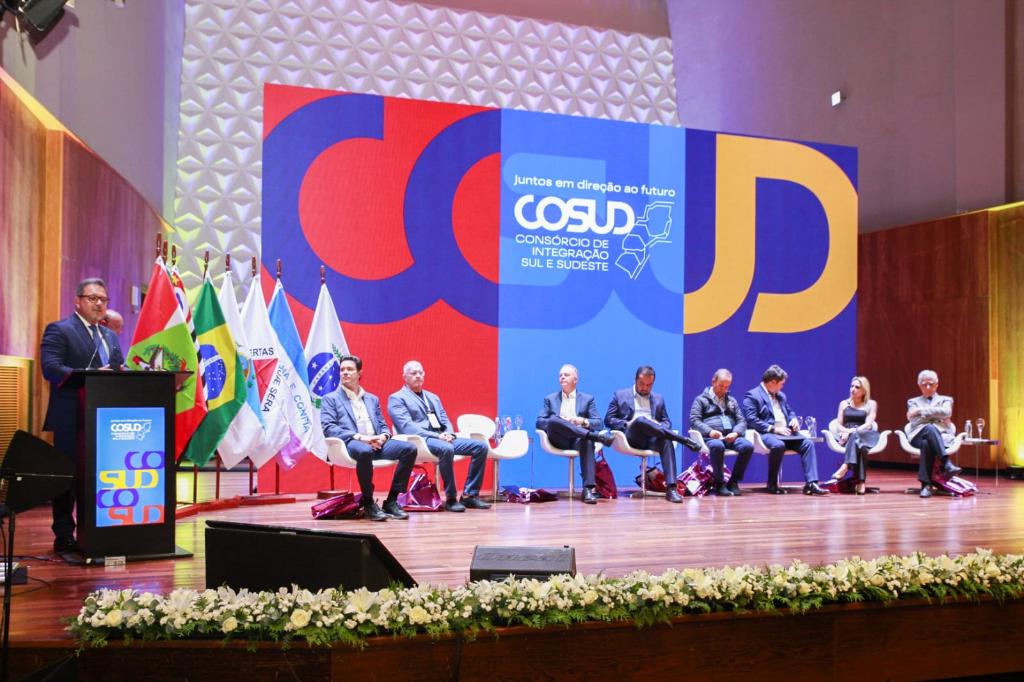 Criado em Belo Horizonte (MG), em 16 de março de 2019, o Consórcio de Integração Sul e Sudeste (COSUD) tem como objetivo consolidar uma agenda permanente de cooperação entre os governos das duas regiões, alinhada às demandas econômicas, sociais e ambientais. Com uma população de 119 milhões de habitantes — o equivalente a 70% do PIB nacional, segundo o IBGE —, os estados do Sul e Sudeste concentram temas prioritários como segurança pública, combate ao contrabando, sistema prisional, saúde, desburocratização, turismo, educação, desenvolvimento econômico, logística, transportes, inovação e tecnologia.