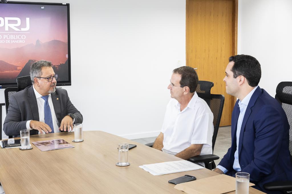 O procurador-geral de Justiça, Antonio José Campos Moreira, reuniu-se nesta quarta-feira (04/02) com o prefeito do Rio, Eduardo Paes, e o vice-prefeito, Eduardo Cavaliere. Durante o encontro, realizado no gabinete do PGJ, foram discutidos os pontos de um Termo de Ajustamento de Conduta (TAC) que será assinado entre o Ministério Público do Estado do Rio de Janeiro (MPRJ) e a Prefeitura do Rio, para garantir proteção e ações destinadas à população em situação de rua.