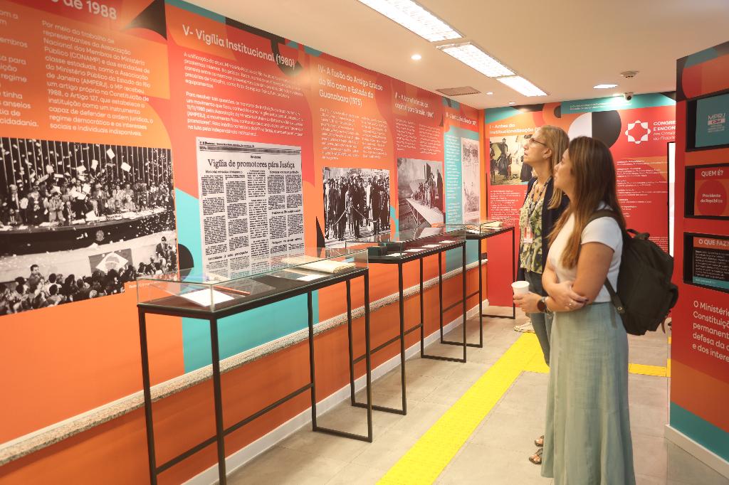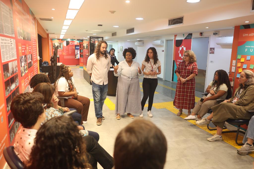 Recepcionados pela historiadora Nayara Cristina e pela estagiária de História Samara Tarouquela, os estudantes circularam pelas exposições “Congressos e Encontros: em construção da cidadania” e “O MP e o novo estado: 50 anos da fusão”. Eles tiveram a oportunidade de conhecer a história e o trabalho desenvolvido pelo MPRJ em áreas como desinstitucionalização e acompanhamento de pacientes psiquiátricos, meio ambiente e direito do consumidor.