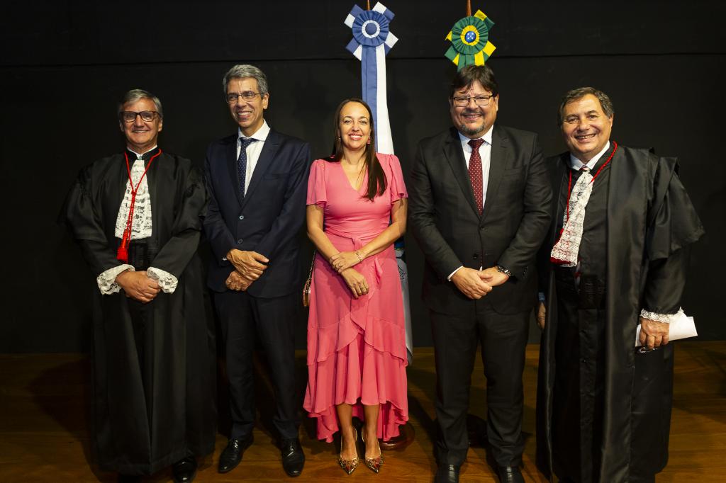 O procurador-geral de Justiça, Luciano Mattos, participou, nesta sexta-feira (15/12), da sessão solene de posse do novo presidente do Tribunal Regional Eleitoral do Rio de Janeiro (TRE-RJ), o desembargador Henrique Figueira, e do novo vice-presidente e corregedor regional eleitoral, o desembargador Peterson Barroso Simão. A nova presidência para o biênio 2024-2025 assume no lugar do desembargador João Ziraldo Maia, que dirigiu a corte eleitoral de março a dezembro deste ano.