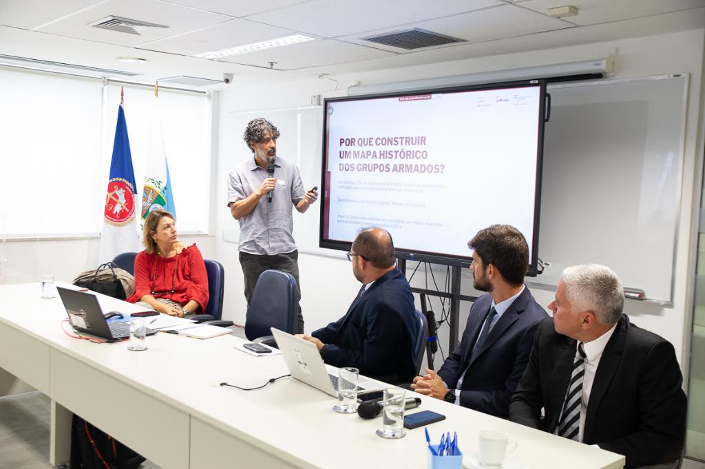 Daniel Hirata dividiu a apresentação em três partes e falou sobre o mapa dos grupos armados do Rio de Janeiro, com as áreas sob controle de cada grupo armado; a construção da base cartográfica e estratégias para a formação da base de dados; classificação das denúncias relacionadas a atividades criminais do tráfico de drogas e da milícia, entre outros temas relacionados à segurança pública. Após a apresentação, os participantes puderam fazer perguntas, tirar dúvidas e encaminhar sugestões sobre o assunto.
