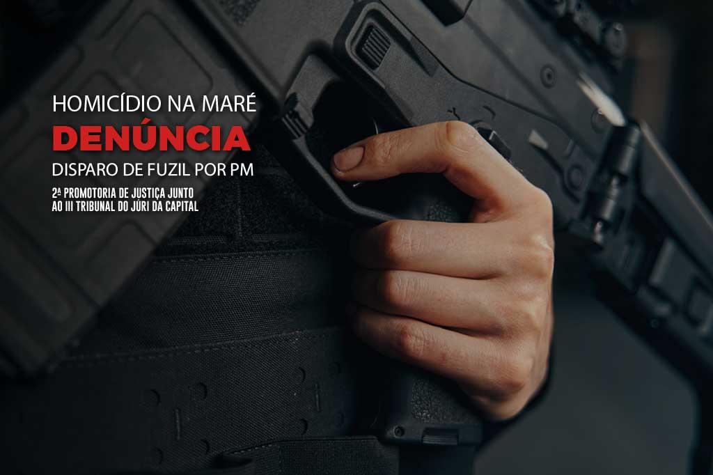 O Ministério Público do Estado do Rio de Janeiro (MPRJ), por meio da 2ª Promotoria de Justiça junto ao III Tribunal do Júri da Capital, ofereceu à 3ª Vara Criminal da Comarca da Capital, no dia 22/02, denúncia contra o policial militar Carlos Eduardo Gomes dos Reis, em razão de homicídio de grande repercussão na mídia. O crime ocorreu poucos dias antes, em 08/02, por volta das 11h20, na Avenida Brasil, em frente ao nº 6.300, na altura da passarela 09, na Maré. Relata o MPRJ que o denunciado, consciente e voluntariamente, assumiu o risco de matar ao golpear, com o dedo no gatilho, Jefferson de Araújo Costa, de 22 anos, com a ponta do fuzil calibre 7.62 que portava, efetuando um disparo que o atingiu, provocando sua morte. O denunciado já se encontra preso preventivamente pelos fatos descritos acima.