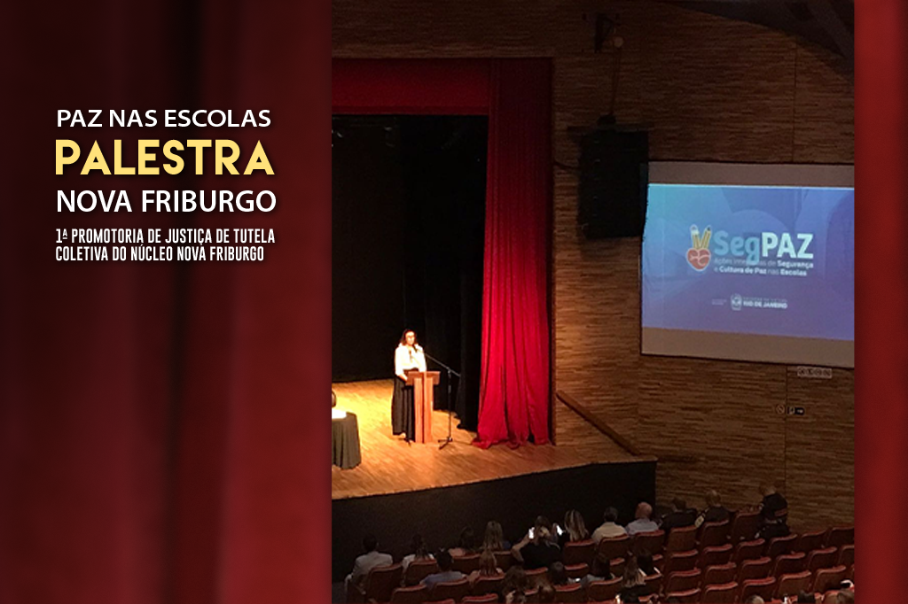 A titular da 1ª Promotoria de Justiça de Tutela Coletiva do Núcleo Nova Friburgo, Cláudia Canto Condack, participou, na terça-feira (07/05), de evento organizado pela Secretaria de Estado de Educação do Rio de Janeiro (SEEDUC-RJ) sobre os avanços do Plano de Ações Integradas de Segurança e Cultura de Paz nas Escolas (SegPaz). O evento teve como objetivo orientar os servidores lotados nas escolas da rede SEEDUC/RJ e das Secretarias Municipais de Educação abrangidas pela Diretoria Regional Pedagógica Serrana II (DIRPSII) sobre como agir em episódios de violência que envolvam agressor ativo, dentro da unidade escolar.