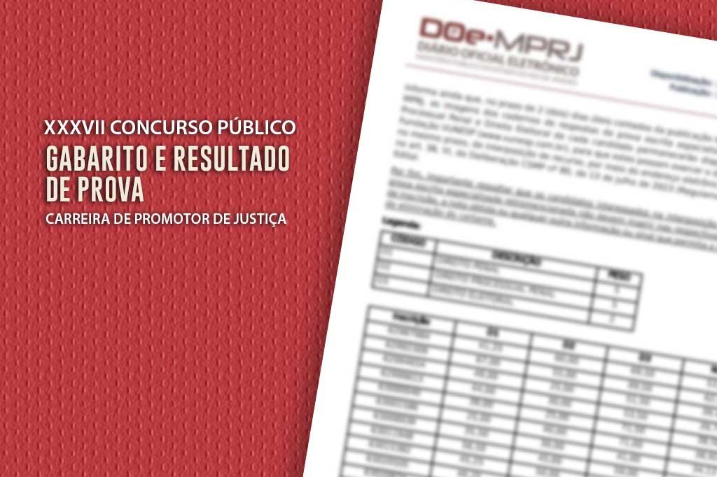 Foram publicados no Diário Oficial do Ministério Público do Estado do Rio de Janeiro (MPRJ), nesta quinta-feira (09/05), o resultado e o gabarito oficial da prova escrita especializada da Banca de Direito Penal, Direito Processual Penal e Direito Eleitoral do XXXVII Concurso Público para ingresso na carreira de promotor de Justiça. A vista de prova está disponibilizada no site da Fundação Vunesp entre os dias 10/05 e 13/05, mesmo período em que os interessados poderão interpor recurso.