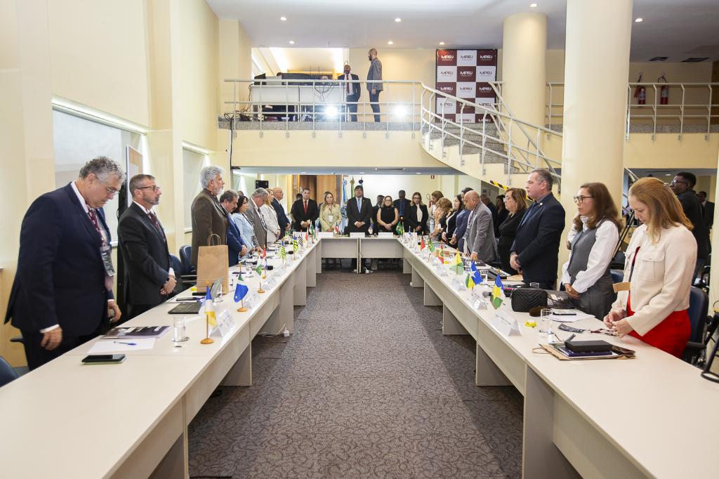 Foi realizada nesta quinta-feira (16/05), a abertura da 70ª Reunião Ordinária do Conselho Nacional dos Ouvidores do Ministério Público dos Estados e da União (CNOMP), no foyer do 9° andar do edifício-sede do Ministério Público do Estado do Rio de Janeiro (MPRJ), no centro do Rio. Durante dois dias, representantes das Ouvidorias dos MPs de todo o país vão trocar experiências e debater questões relativas ao aperfeiçoamento do trabalho. A presidente do CNOMP, Jussara Maria Pordeus e Silva, abriu o encontro pedindo um minuto de silêncio em solidariedade às vítimas da tragédia no Rio Grande do Sul. O ouvidor do MPRS, Mauro Henrique Renner, participou do evento por videoconferência.