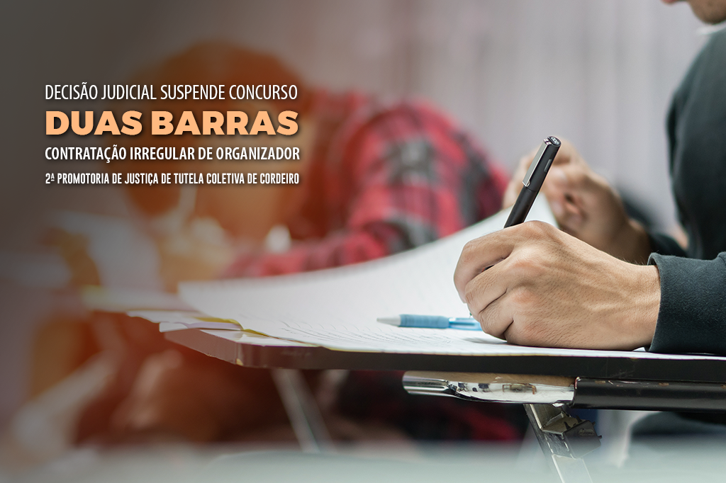 O Ministério Público do Estado do Rio de Janeiro (MPRJ) obteve, neste domingo (26/05), liminar garantindo a suspensão do concurso público do município de Duas Barras. A decisão atende a um pedido formulado na Ação Civil Pública ajuizada pela 2ª Promotoria de Justiça de Tutela Coletiva do Núcleo Cordeiro, que apontou diversas irregularidades no processo de contratação do Instituto Aplicado de Seleção e Pesquisa (IASP), como organizador do processo de seleção para mais de 200 vagas. Os valores arrecadados com a inscrição das provas deverão ser depositados em juízo para que sejam devolvidos futuramente, em caso de anulação do certame.