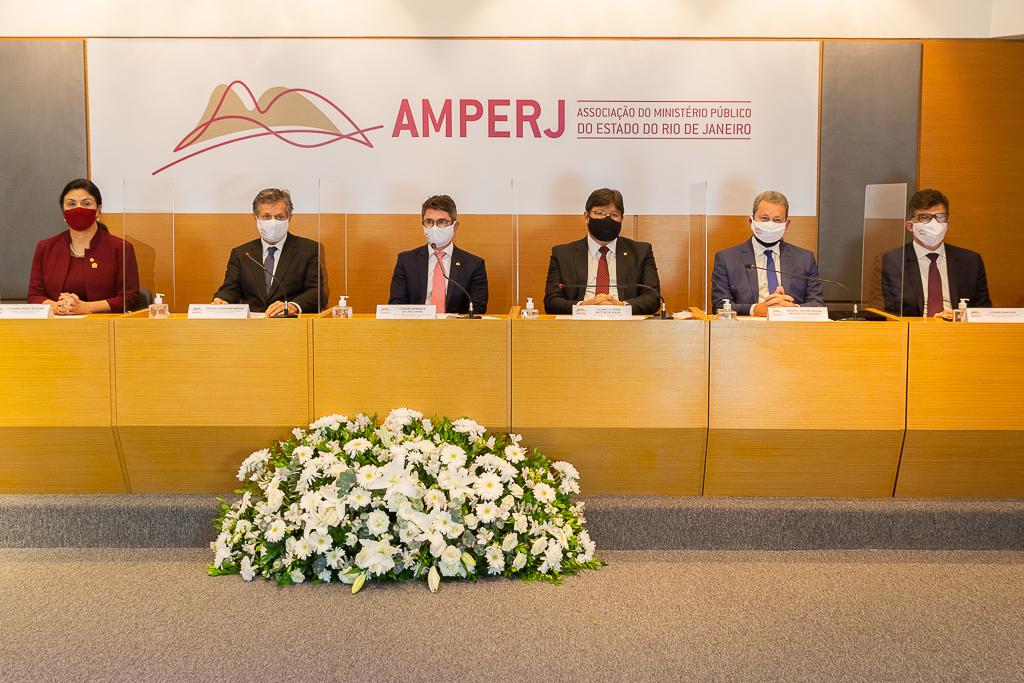 Luciano Mattos, que presidiu a Amperj por três mandatos, entre os anos de 2013 e 2018, falou de sua trajetória na Associação ao parabenizar Cláudio Henrique pela posse. “É uma honra retornar à Casa onde eu obtive muito aprendizado e experiência, tanto na via pessoal como na profissional. Enfrentamos desafios dificílimos durante o tempo em que estive aqui, uma instituição que completa 75 anos de existência em 2021 e que se confunde com a história do MP brasileiro. Tenho certeza que o doutor Cláudio, com toda a sua experiência e brilhantismo, dará continuidade à luta pelos direitos do MP e pelas garantias necessárias para que possamos continuar exercendo o papel de defesa da sociedade”, afirmou o PGJ.