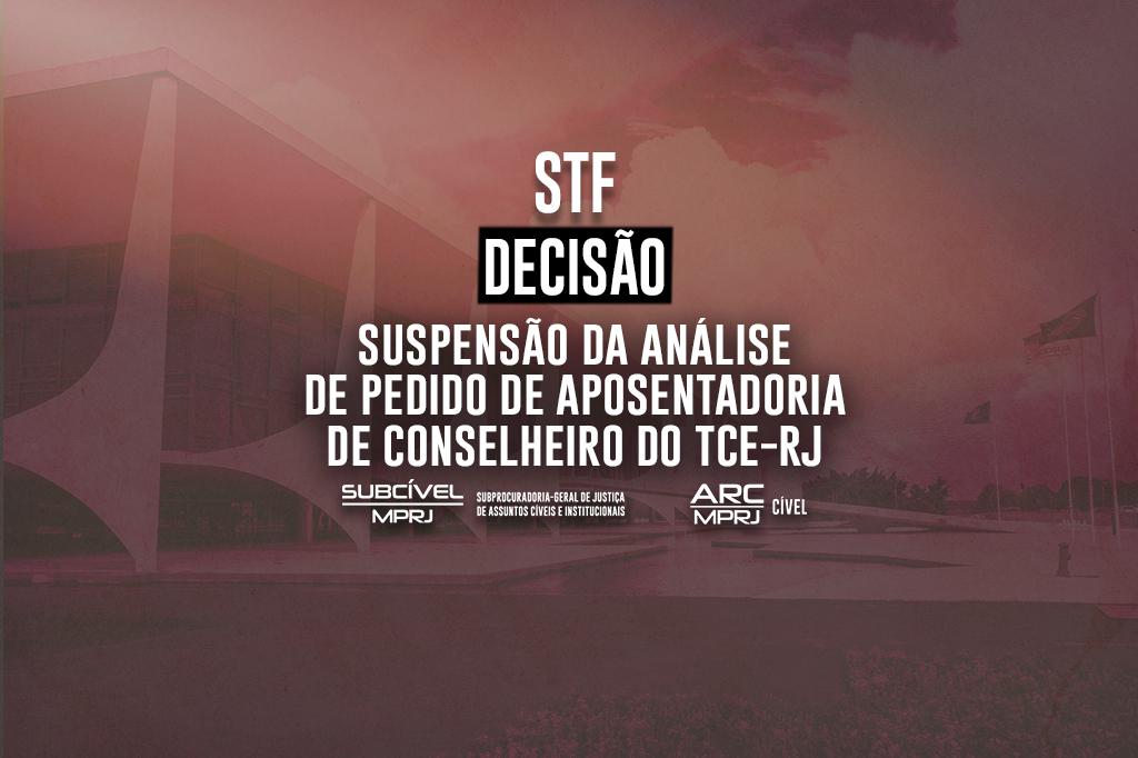 O Ministério Público do Estado do Rio de Janeiro (MPRJ), por meio da Subprocuradoria-Geral de Justiça de Assuntos Cíveis e Institucionais (SubCivel/MPRJ) e da Assessoria de Recursos Constitucionais Cíveis (ARC Cível/MPRJ), obteve, na última sexta-feira (12/02), decisão do Ministro Luiz Fux, presidente do Supremo Tribunal Federal (STF), confirmando liminar deferida, em 14 de janeiro, em suspensão de segurança ajuizada pelo MPRJ - leia aqui a matéria anterior. Assim, o STF negou agravo interposto, e confirmou a suspensão da decisão proferida nos autos do Mandado de Segurança nº 0057416-23.2020.8.19.0000, em tramitação no Tribunal de Justiça do Estado (TJ-RJ), e, por consequência, do processo de aposentadoria voluntária do conselheiro do Tribunal de Contas do Estado do Rio de Janeiro (TCE-RJ), Aloysio Neves Guedes.