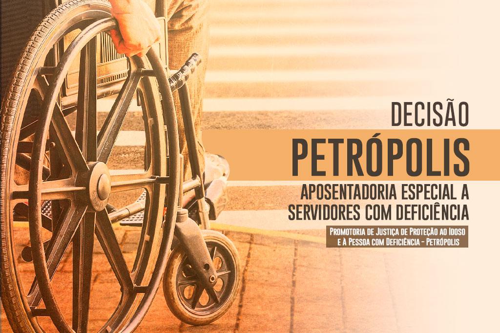 O Ministério Público do Estado do Rio de Janeiro (MPRJ), por meio da Promotoria de Justiça de Proteção ao Idoso e à Pessoa com Deficiência do Núcleo Petrópolis, obteve, junto à 4ª Vara Cível de Petrópolis, decisão favorável para que o Município de Petrópolis conceda aposentadoria especial a seus servidores com algum tipo de deficiência. O pedido foi feito por meio de uma Ação Civil Pública, ajuizada em 2018.
