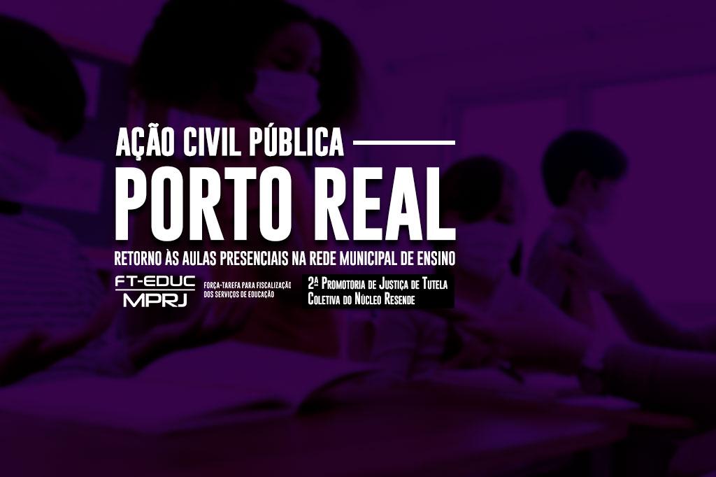 O Ministério Público do Estado do Rio de Janeiro (MPRJ), por meio da Força-Tarefa de Educação (FT-Educação/MPRJ) e da 2ª Promotoria de Justiça de Tutela Coletiva do Núcleo Resende, ajuizou ação civil pública para que o Município de Porto Real retome as aulas presenciais na rede municipal de ensino. De acordo com a ação, ajuizada nesta terça-feira (20/07), as aulas devem ser retomadas considerando o fato de que o município encontra-se, atualmente, na bandeira amarela de classificação com relação à Covid-19, considerada de risco sanitário mais baixo.