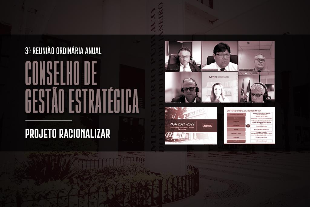 O Conselho de Gestão Estratégica do Ministério Público do Estado do Rio de Janeiro (CGE/MPRJ) aprovou, por unanimidade, durante a sua 3ª Reunião Ordinária Anual, a minuta do projeto Racionalizar, que pretende tornar mais eficientes as atividades referentes às funções finalística e meio da instituição. Com isso, a equipe da Secretaria-Geral de Planejamento Institucional (SGPI/MPRJ) dará continuidade à proposta, elaborando um Plano Diretor de Gestão das Procuradorias e Promotorias de Justiça, que também será objeto de apreciação pelo CGE/MPRJ.
