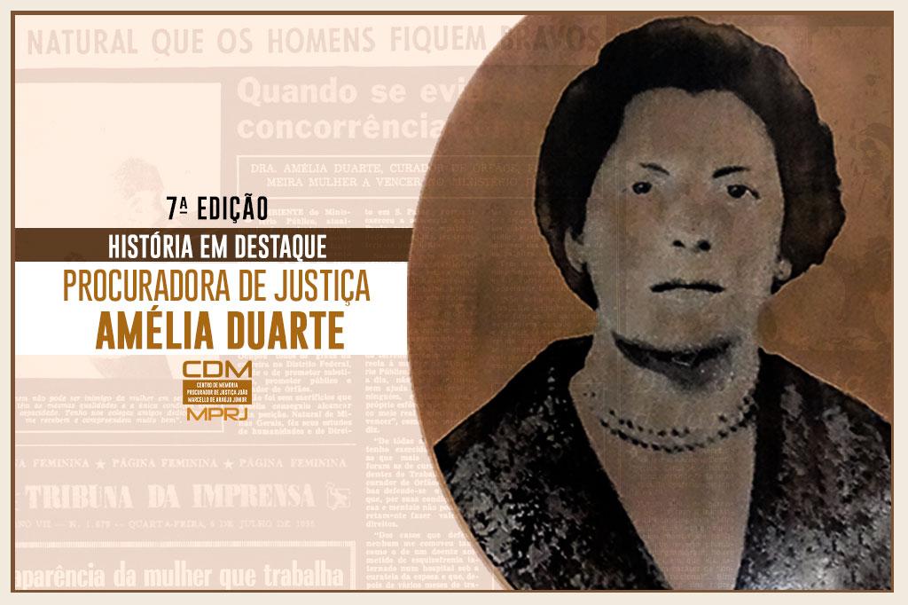 O Ministério Público do Estado do Rio de Janeiro (MPRJ), por meio do Centro de Memória Procurador de Justiça João Marcello de Araújo Júnior (CDM/MPRJ), apresenta a 7ª edição do Projeto História em Destaque: Amélia Duarte, um exemplo de mulher feminista. Nesta edição do projeto, o CDM/MPRJ fez um levantamento sobre a obra da procuradora de Justiça Amélia Duarte, primeira mulher a ingressar no MPRJ, em 1936, e suas aparições em jornais de época, apresentando, como item documental, o artigo digitalizado “A Funcionária Pública sob a Constituição de 1937”, de sua autoria.