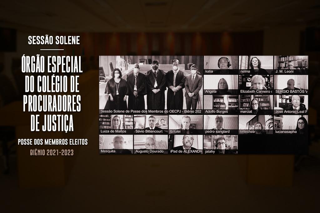 O Ministério Público do Estado do Rio de Janeiro (MPRJ) empossou, na manhã desta quinta-feira (23/09), em sessão solene, os membros eleitos para o Órgão Especial do Colégio de Procuradores de Justiça para o biênio 2021-2023. A solenidade foi realizada em formato híbrido, com participação presencial na Sala de Sessões dos Órgãos Colegiados e também por videoconferência. Foram empossados os procuradores de Justiça Carlos Roberto de Castro Jatahy, Marcelo Daltro Leite, Angela Maria Silveira dos Santos, Márcia Maria Tamburini Porto, Carla Rodrigues Araujo de Castro, Sávio Renato Bittencourt Soares Silva, Nelma Gloria Trindade de Lima, Márcio José Nobre de Almeida, Elizabeth Carneiro de Lima e Antonio Carlos da Graça de Mesquita. O procurador-geral de Justiça, Luciano Mattos, presidiu a sessão.