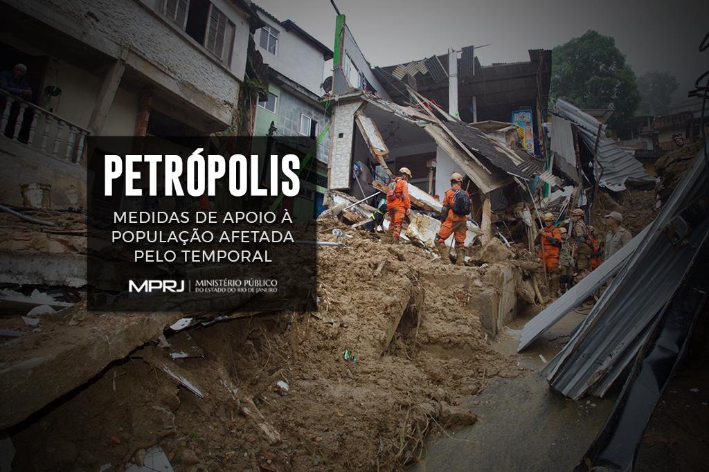 Também nesta quinta-feira, a 1ª Promotoria de Justiça de Tutela Coletiva de Petrópolis expediu recomendação à população de Petrópolis para que se evite circular ou permanecer nos locais do desastre e que as pessoas se mantenham em locais seguros, já que o solo continua encharcado e a previsão é de chuvas fortes ainda nos próximos dias. Já a 2ª Promotoria de Tutela Coletiva de Petrópolis instalou uma sala de crise em parceria com a Enel, responsável pelo fornecimento de energia elétrica no município, para acompanhar o restabelecimento do serviço nas áreas afetadas. Da mesma forma, o Ministério Público acompanha o restabelecimento do abastecimento de água junto ao Grupo Águas do Brasil, responsável pelos serviços de saneamento em Petrópolis, por meio da Águas do Imperador.