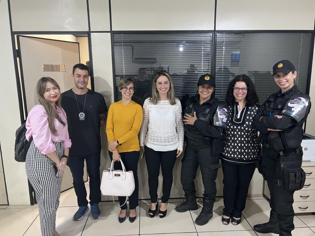 Depois do encontro no MPRJ, foi feita uma visita à Delegacia de Atendimento à Mulher de Angra dos Reis. Com o intuito de fortalecer articulações institucionais, os promotores reuniram-se com a delegada titular, Paula Loureiro, e com policiais que integram a Patrulha Maria da Penha na cidade.