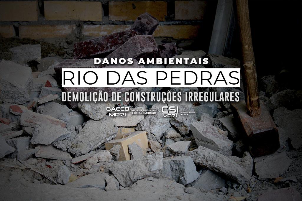 O Ministério Público do Estado do Rio de Janeiro (MPRJ), por meio da Força-Tarefa do Grupo de Atuação Especializada no Combate ao Crime Organizado para enfrentar a ocupação irregular do solo urbano (GAECO/FT-OIS), com apoio da Coordenadoria de Segurança e Inteligência (CSI/MPRJ), participa, nesta quinta-feira (26/05), de mais uma operação conjunta para demolir construções ilegais localizadas em Rio das Pedras, na zona oeste da capital fluminense. Dessa vez, o alvo localiza-se na Estrada Bougainville, onde vistoria de órgãos municipais constatou a presença de construção irregular ainda em curso, sem as devidas licenças, com corte de talude e remoção de solo e material mineral.
