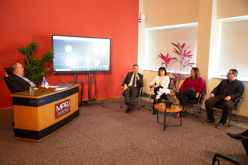 O Ministério Público do Estado do Rio de Janeiro (MPRJ), por meio do Centro de Memória Procurador de Justiça João Marcello de Araújo Júnior (CDM/MPRJ), realizou, na manhã desta terça-feira (23/08), a gravação da 18ª edição do projeto Personalidades do MPRJ. A gravação foi realizada no foyer do 9º andar do edifício-sede e teve como convidados os procuradores de Justiça Maria Amélia Barretto Peixoto e Renato Lisboa Teixeira Pinto, a promotora Fernanda Camara Torres Sodré e o servidor Rafael dos Santos Fonseca, que foram recebidos pelo procurador de Justiça Márcio Klang, para uma conversa sobre a influência do Estatuto da Criança e do Adolescente (ECA) na atuação das Promotorias de Infância e Juventude.