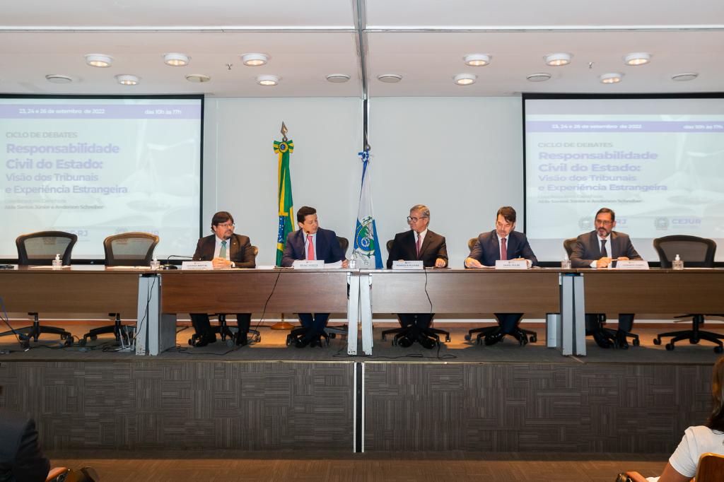 O Ministério Público do Estado do Rio de Janeiro (MPRJ) acompanhou, nesta sexta-feira (23/09), o primeiro dia do "Ciclo de Debates sobre Responsabilidade Civil do Estado: Visão dos Tribunais e Experiência Estrangeira", promovido pela Procuradoria-Geral do Estado do Rio de Janeiro (PGE-RJ). O evento também acontece no sábado (24/09) e na próxima segunda-feira (26/09), no Auditório Machado Guimarães, na sede da PGE-RJ.