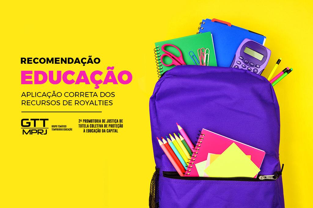 O Ministério Público do Estado do Rio de Janeiro (MPRJ), por meio do Grupo Temático Temporário de Educação (GTT-Educação/MPRJ), expediu Recomendação ao Estado do Rio de Janeiro com uma série de medidas para garantir a correta destinação de recursos vinculados ao desenvolvimento da Educação, como os royalties do petróleo.