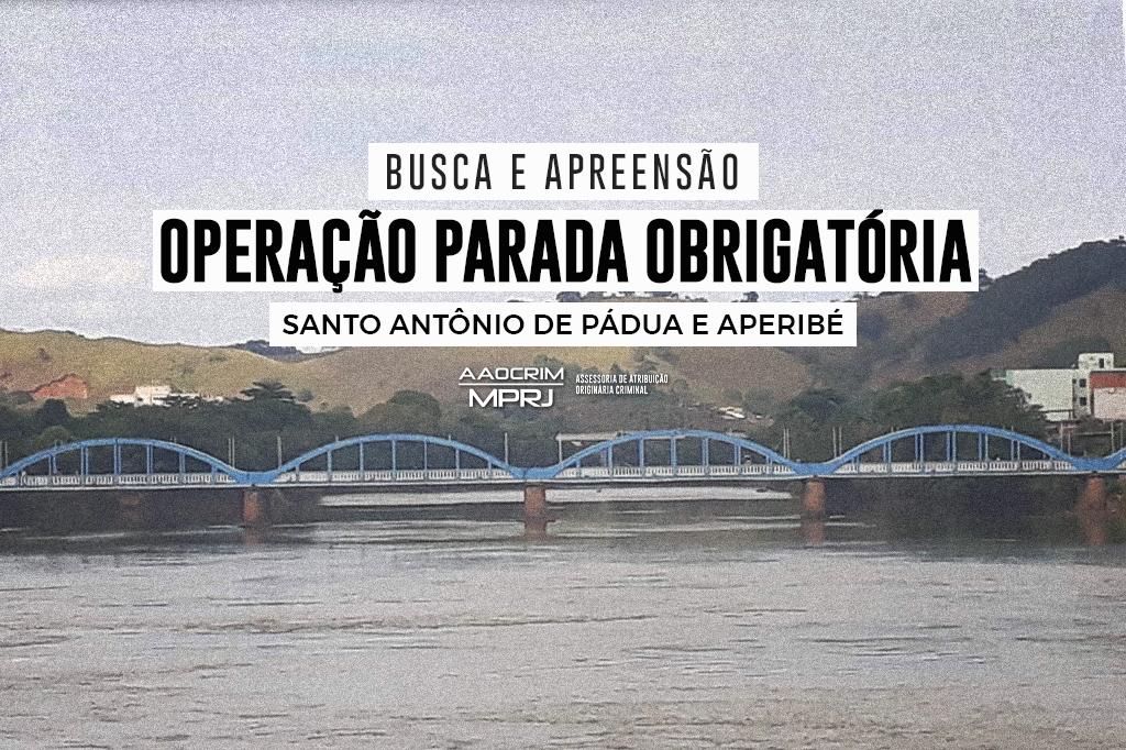 O Ministério Público do Estado do Rio de Janeiro (MPRJ) realiza nesta quinta-feira (02/03) a Operação Parada Obrigatória para cumprir mandados de busca e apreensão expedidos pelo Tribunal de Justiça do Estado do Rio de Janeiro (TJRJ) contra 13 alvos: 9 pessoas físicas e quatro pessoas jurídicas nos municípios de Santo Antônio de Pádua e Aperibé. A operação é realizada em cumprimento de medidas cautelares solicitadas em denúncia oferecida no âmbito da atribuição originária criminal do Procurador-Geral de Justiça, por envolver agente político detentor de foro por prerrogativa de função com previsão na Constituição Federal,.