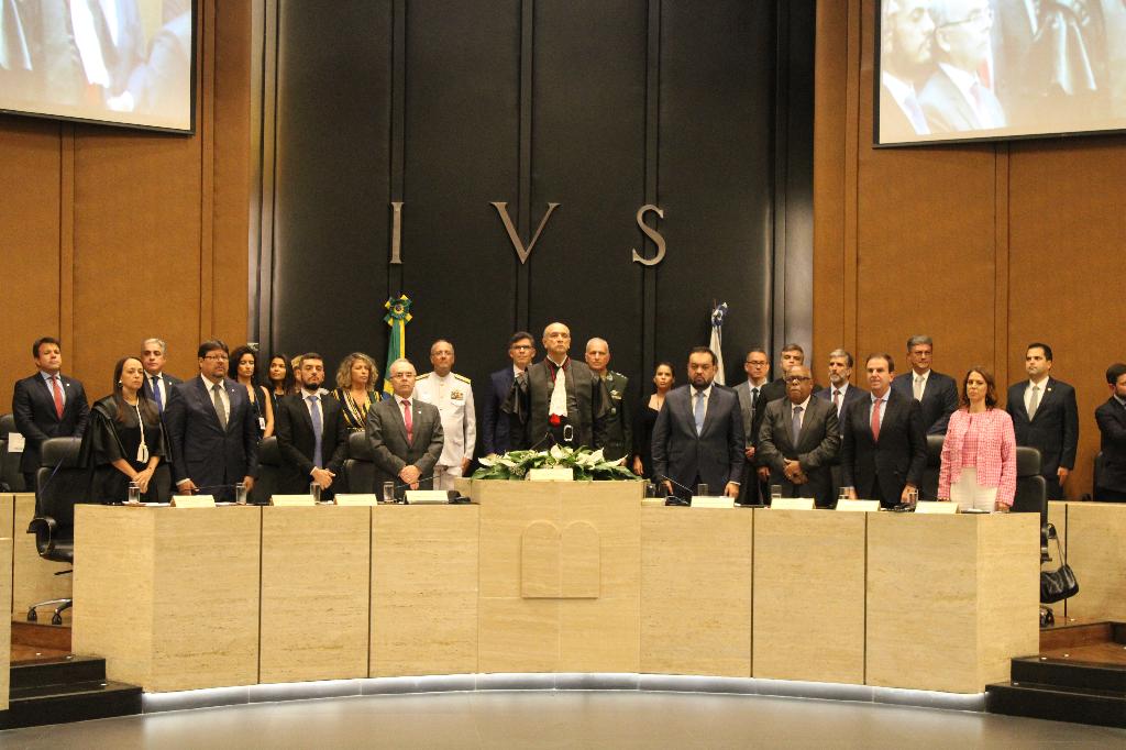 O procurador-geral de Justiça, Luciano Mattos, participou, nesta sexta-feira (24/03), no plenário do Órgão Especial do Tribunal de Justiça do Estado do Rio de Janeiro (TJ-RJ), da cerimônia de posse do novo presidente do Tribunal Regional Eleitoral do Estado (TRE-RJ), desembargador João Ziraldo Maia, que ficará no cargo até dezembro desse ano. Além do desembargador, tomaram posse, como vice-presidente e corregedor regional eleitoral, o desembargador Henrique Figueira, e a juíza Daniela Bandeira de Freitas, como desembargadora eleitoral.
