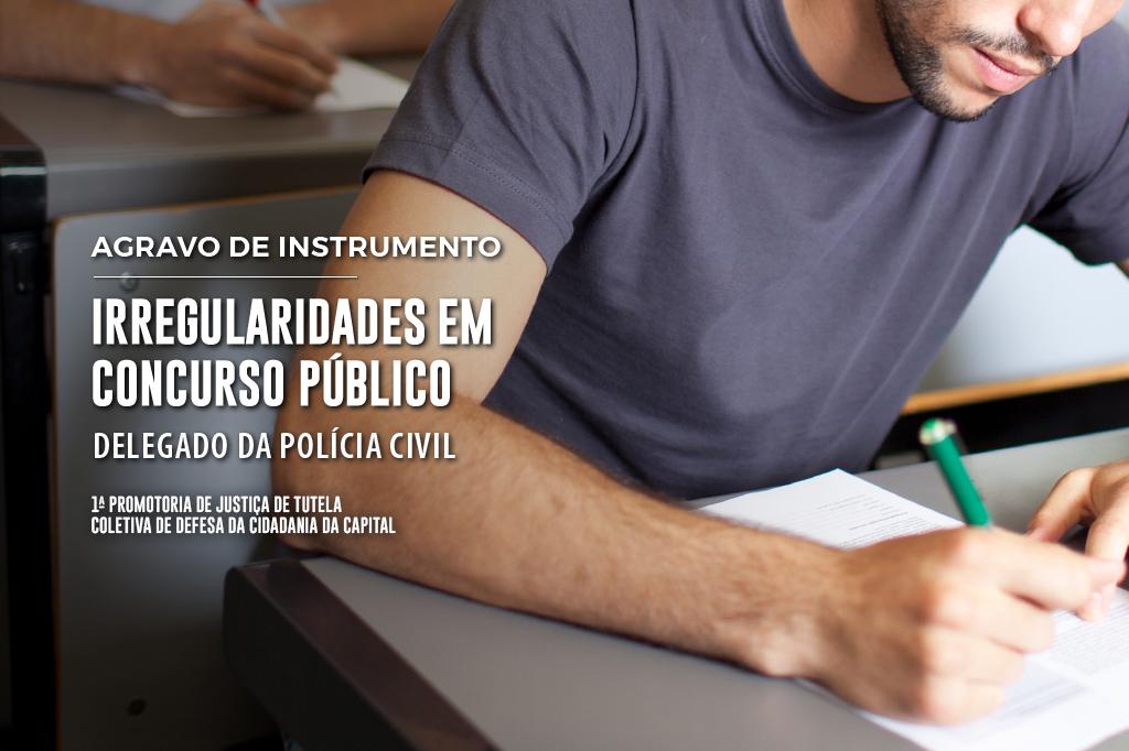 A 1ª Promotoria de Justiça de Tutela Coletiva de Defesa da Cidadania da Capital interpôs, em fevereiro, um agravo de instrumento para suspender o concurso público realizado pelo governo do estado do Rio, em 2021, para o preenchimento de vagas de delegado da Polícia Civil. O pedido, que aguarda análise da Presidência do Tribunal de Justiça, aponta diversas irregularidades ocorridas durante o concurso público, como a permissão de consulta de material impresso em alguns locais de prova e em outros não, e a falta de conhecimento jurídico de alguns fiscais da Cebraspe, organizadora do certame, para determinar o que deveria ser permitido durante o exame, o que acabou favorecendo indevidamente alguns em detrimento de outros, afrontando a igualdade entre os candidatos.
