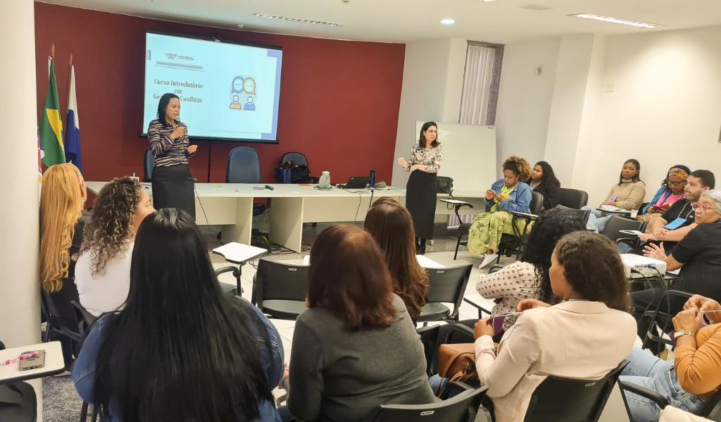 A Coordenadoria de Mediação, Métodos Autocompositivos e Sistema Restaurativo (CEMEAR/MPRJ), em parceria com a Promotoria de Justiça de Infância e Juventude de Itaguaí, promoveu, na quarta-feira (19/07), na sede do Ministério Público do Estado do Rio de Janeiro (MPRJ) em Itaguaí, a primeira aula do curso introdutório em Gestão de Conflitos.