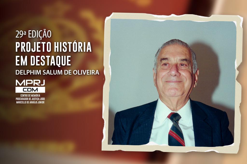 O Ministério Público do Estado do Rio de Janeiro (MPRJ), por meio do Centro de Memória Procurador de Justiça João Marcello de Araújo Júnior (CDM/MPRJ), homenageia, na 29ª edição do projeto “História em Destaque”, o advogado Delphim Salum de Oliveira. Apesar de não fazer parte do quadro de membros do MPRJ, Delphim era uma personalidade amplamente reconhecida, chegando a receber o título de Sócio Benemérito da Associação do Ministério Público do Estado do Rio de Janeiro (AMPERJ) ao lado de seu irmão, Ararino Salum de Oliveira.