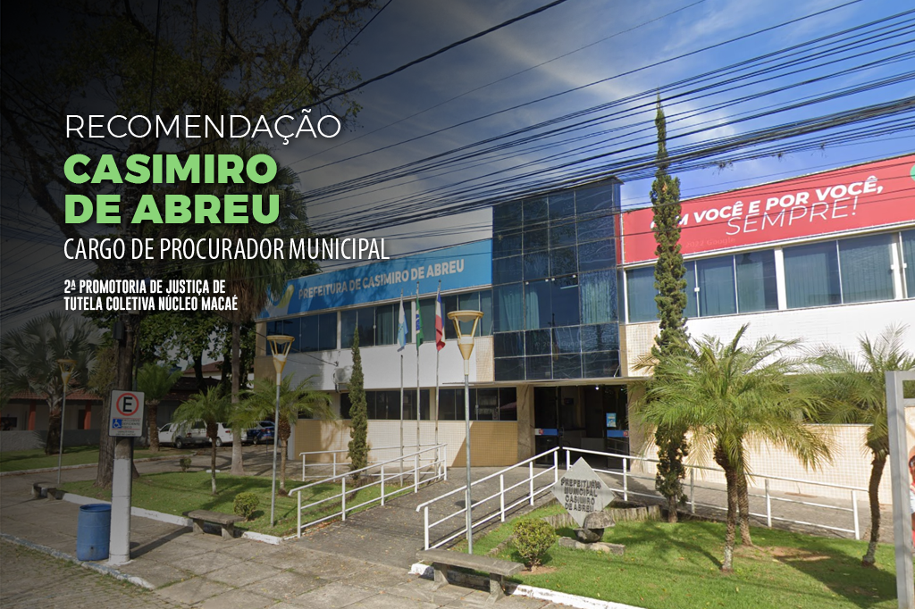 O Ministério Público do Estado do Rio de Janeiro (MPRJ), por meio da 2ª Promotoria de Justiça de Tutela Coletiva Núcleo Macaé, expediu, nesta segunda-feira (11/09), Recomendação ao prefeito de Casimiro de Abreu, Ramon Dias Gidalte, para que crie, em até 60 dias, vaga efetiva de procurador do Município. Após, o documento orienta para que seja realizado, no prazo de 180 dias, concurso para o cargo e que aprovados substituam os servidores comissionados na função. O Município tem 15 dias para informar ao MPRJ quais medidas serão adotadas para acatar a Recomendação.