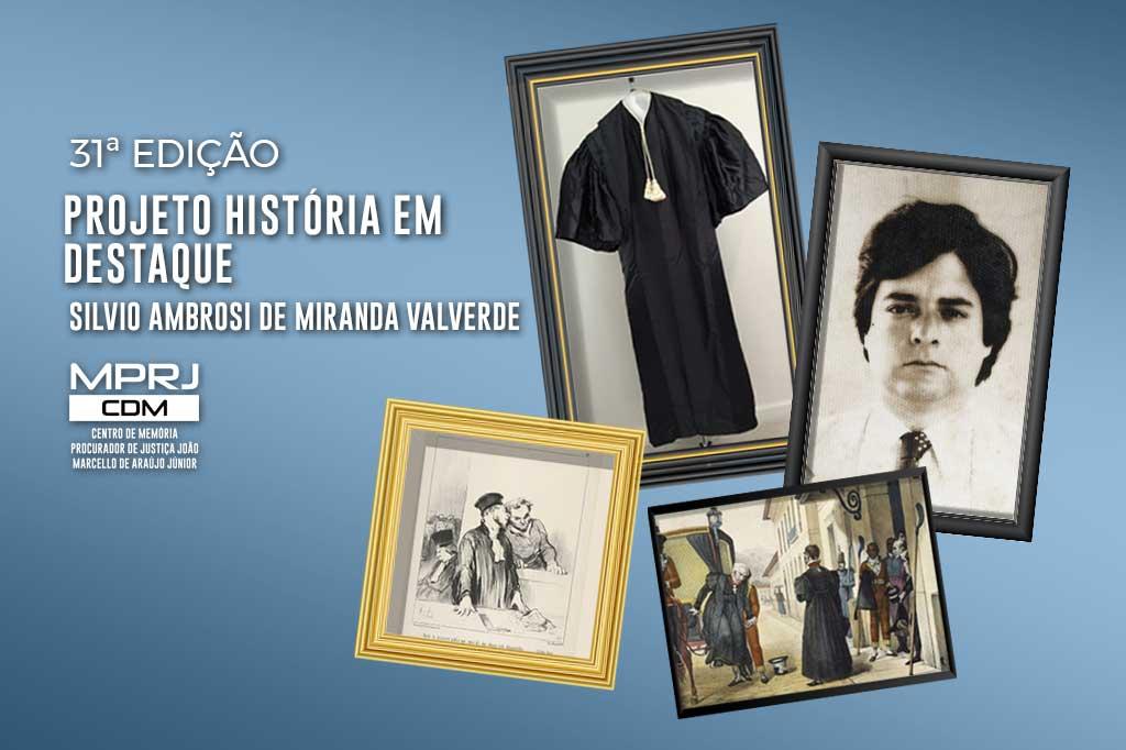 O Ministério Público do Estado do Rio de Janeiro (MPRJ), por meio do Centro de Memória Procurador de Justiça João Marcello de Araújo Júnior (CDM/MPRJ), homenageia, na 31ª edição do projeto “História em Destaque”, o procurador de Justiça Silvio Ambrosi de Miranda Valverde, falecido em 1999. A beca do procurador, que estava com o Centro de Apoio Administrativo e Institucional dos Procuradores de Justiça (CAAIPJ) foi doada ao memorial em 12/05/2022 e está sendo agora apresentada pelo projeto.