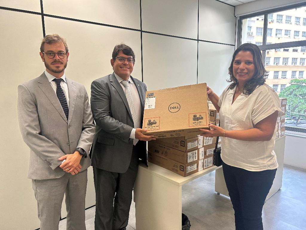A 1ª Promotoria de Justiça de Fundações, em esforço conjunto com a Fundação Getúlio Vargas (FGV), entregou, na tarde desta quarta-feira (13/03), laptops à Prefeitura de Japeri. O objetivo da ação é recompor o parque tecnológico municipal, afetado pelas chuvas e enchentes que deixaram a cidade em estado de calamidade, permitindo especialmente que equipes da defesa civil consigam cadastrar imóveis em risco de desmoronamento para retirada de famílias e regulação de aluguel social. A prefeita de Japeri, Fernanda Ontiveros, agradeceu a ajuda, e ressaltou que a ação será de valor inestimável para a comunidade mais carente.