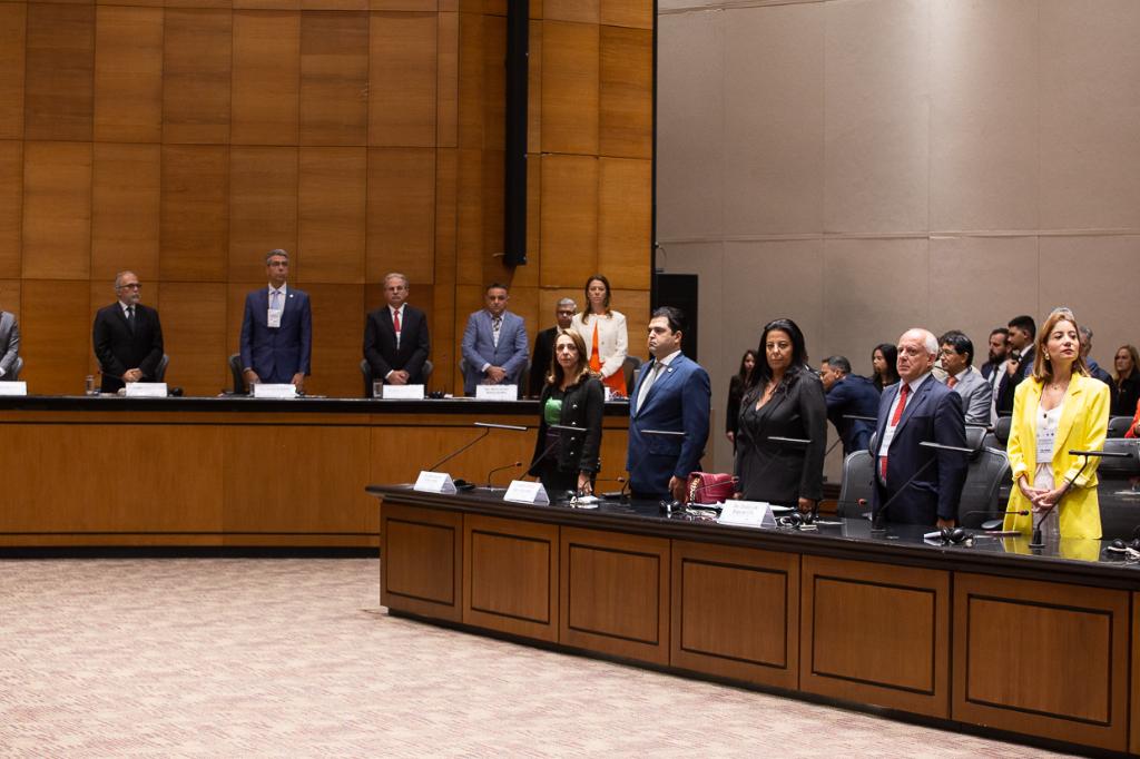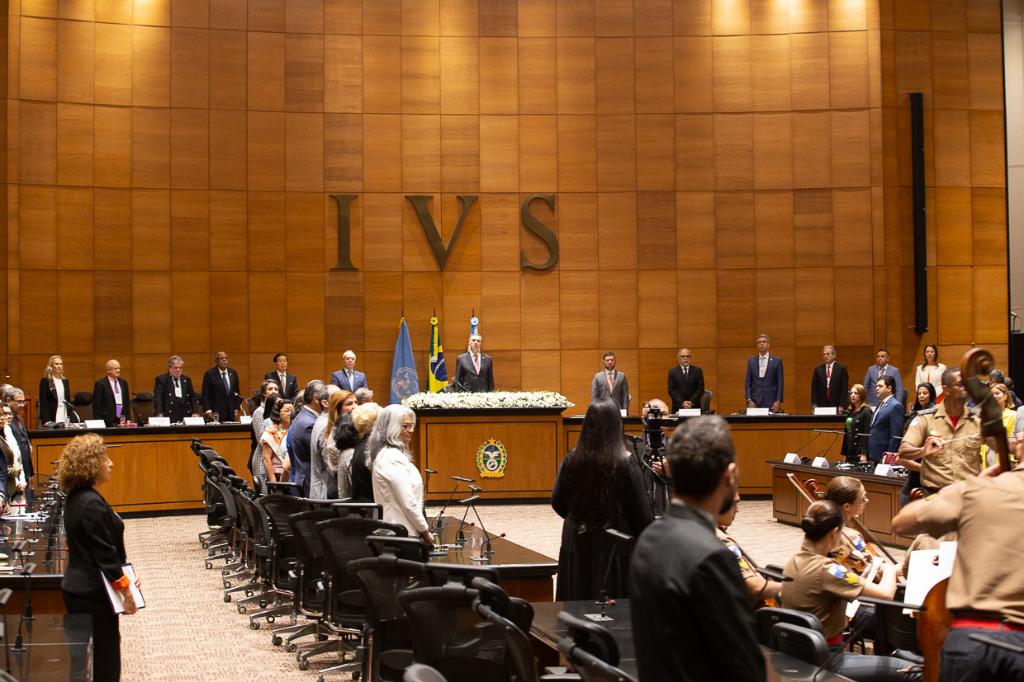 Compondo a mesa de abertura, além de Luís Roberto Barroso, estavam o ministro Benedito Gonçalves, presidente do Superior Tribunal de Justiça (STJ); o presidente do Tribunal de Justiça do Estado do Rio de Janeiro (TJRJ), Ricardo Rodrigues Cardozo; a presidente da Associação dos Magistrados do Estado do Rio de Janeiro (Amaerj), Eunice Bitencourt Haddad; o chefe da Casa Civil do Governo do Estado do Rio de Janeiro, Nicola Miccione; o coordenador-geral do COPLAD, Edmundo Oliveira; o vice-presidente da Fundação Internacional Penal e Penitenciária (FIPP), Alejo García Basalo; o chefe do Sistema de Segurança Humana da ONU, Yukio Takasu; o diretor do ILANUD, Douglas Durán Chavarría; o presidente do Tribunal Regional Federal da 2ª Região (TRF-2), Guilherme Calmon; o diretor-geral da Escola da Magistratura do Estado do Rio de Janeiro (EMERJ), Marco Aurélio Bezerra de Melo; e o secretário de Assuntos Jurídicos da Organização dos Estados Americanos (OEA), Jean Michel Arrighi.