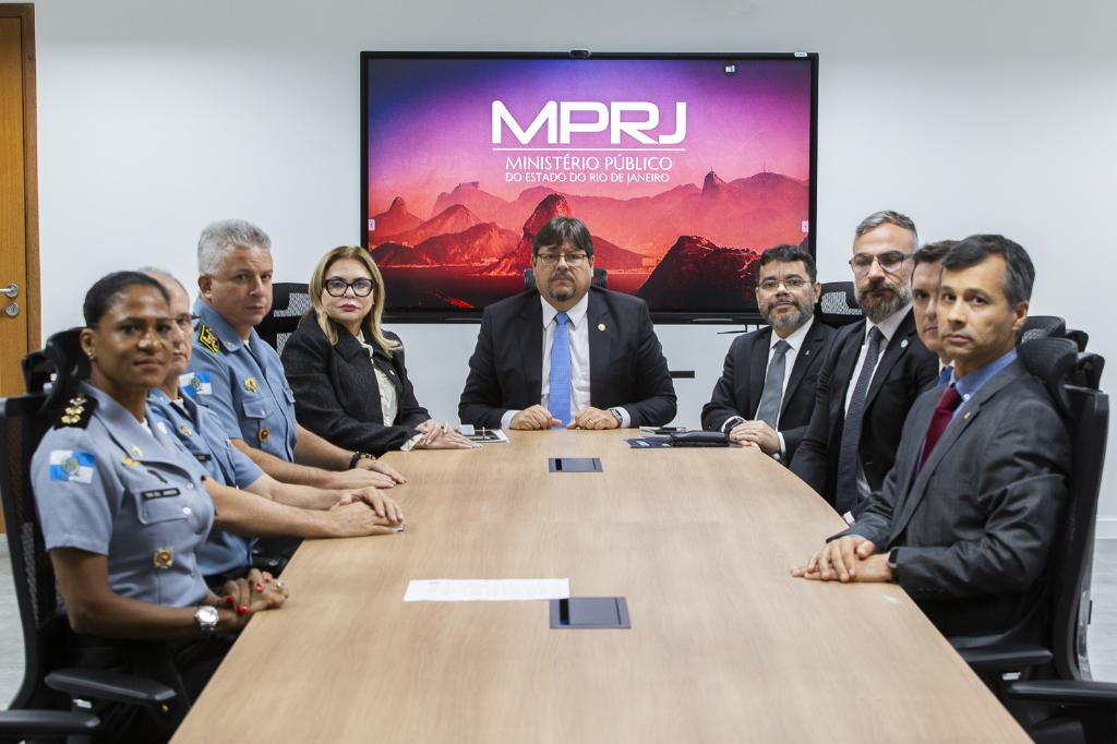 Em reunião realizada nesta quinta-feira (16/05), na sede do MPRJ, da qual participaram o procurador-geral de Justiça, Luciano Mattos; a ouvidora nacional do Conselho Nacional do Ministério Público (CNMP), Ivana Cei; o membro auxiliar da Ouvidoria Nacional, Oswaldo D’Albuquerque Lima Neto, o secretário de Polícia Militar do Estado do Rio de Janeiro, cel. PM Marcelo Menezes Nogueira, e o secretário de Polícia Civil do Estado, delegado Marcus Amin, ficou acertada uma visita nesta sexta-feira (17/05), às 11h, ao Centro Integrado de Comando e Controle (CICC). Na ocasião, representantes do MPRJ e da Ouvidoria Nacional do Ministério Público (CNMP) poderão conhecer a Ouvidoria-Geral da Polícia Militar do Estado do Rio de Janeiro e vistoriar o sistema das câmeras corporais dos policiais.