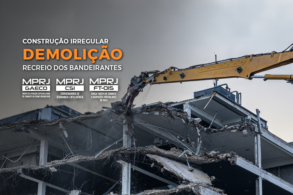 O Ministério Público do Estado do Rio de Janeiro (MPRJ), por meio da Força-Tarefa de Enfrentamento à Ocupação Irregular do Solo Urbano, do Grupo de Atuação Especializada de Combate ao Crime Organizado (GAECO/FT-OIS), em atuação conjunta com a Secretaria Municipal de Ordem Pública (SEOP), retomam, nesta quinta-feira (04/07), a demolição de um prédio de sete andares localizado na rua Flávio de Aquino, próximo ao Terreirão, no Recreio dos Bandeirantes, área que sofre forte influência do crime organizado. A ação da Prefeitura havia sido paralisada devido a uma decisão liminar obtida pelos proprietários, que foi revogada recentemente. Estima-se um prejuízo de R$ 13 milhões aos responsáveis.