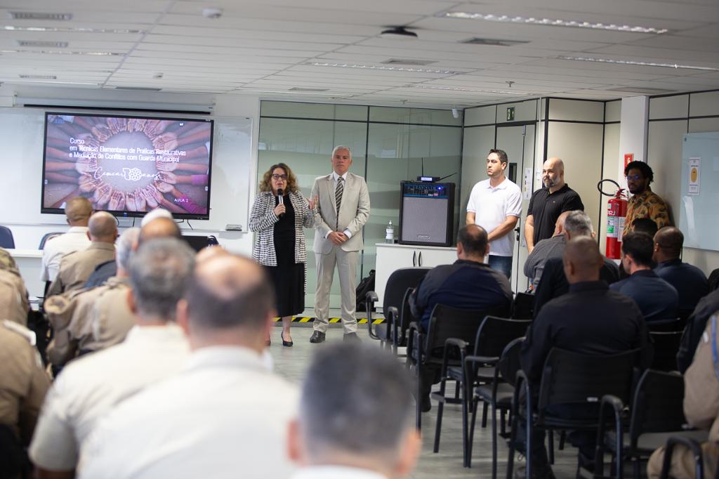 O Ministério Público do Estado do Rio de Janeiro (MPRJ), por meio do Instituto de Educação Roberto Bernardes Barroso (IERBB/MPRJ) e da Coordenadoria de Mediação, Métodos Autocompositivos e Sistema Restaurativo (CEMEAR/MPRJ), realizou, nesta segunda-feira (15/07), a primeira aula do curso “Técnicas Elementares de Práticas Restaurativas e Mediação de Conflitos”, destinado aos agentes da Guarda Municipal do Rio de Janeiro, São Gonçalo e Tanguá.