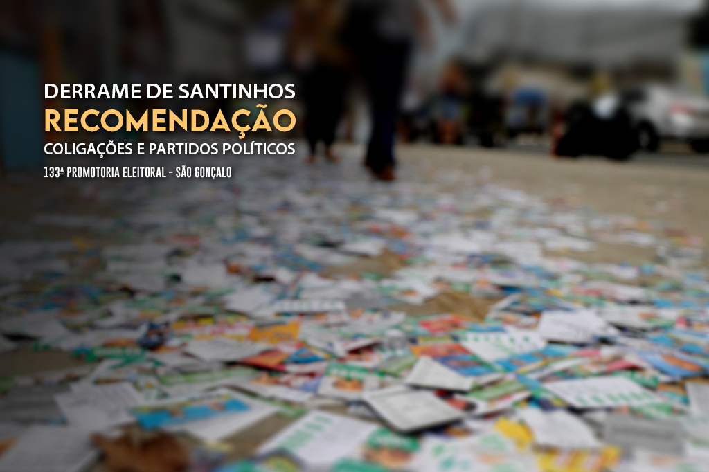 O Ministério Público Eleitoral, por meio da 133ª Promotoria Eleitoral (São Gonçalo), expediu, na quarta-feira (02/10), Recomendação às coligações e aos partidos políticos não coligados para que adotem medidas com o propósito de coibir a prática ilegal conhecida como derrame de santinhos ou chamado voo da madrugada – propaganda de candidatos jogadas nas ruas, na véspera da eleição. No documento, a promotoria lembra aos envolvidos que a propaganda eleitoral somente é permitida até as 22h do dia que antecede as eleições.