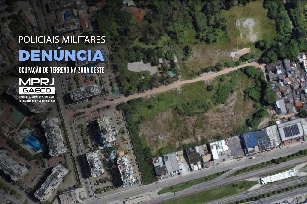 O Grupo de Atuação Especializada de Combate ao Crime Organizado do Ministério Público do Estado do Rio de Janeiro (GAECO/MPRJ) denunciou à Justiça quatro policiais militares por crimes relacionadas à ocupação ilegal de lotes na Avenida das Américas, no Recreio dos Bandeirantes. Entre os acusados, o PM Francisco de Assis Ferreira Pereira foi denunciado por estelionato, falsificação de documentos, fraude processual e falsidade ideológica.