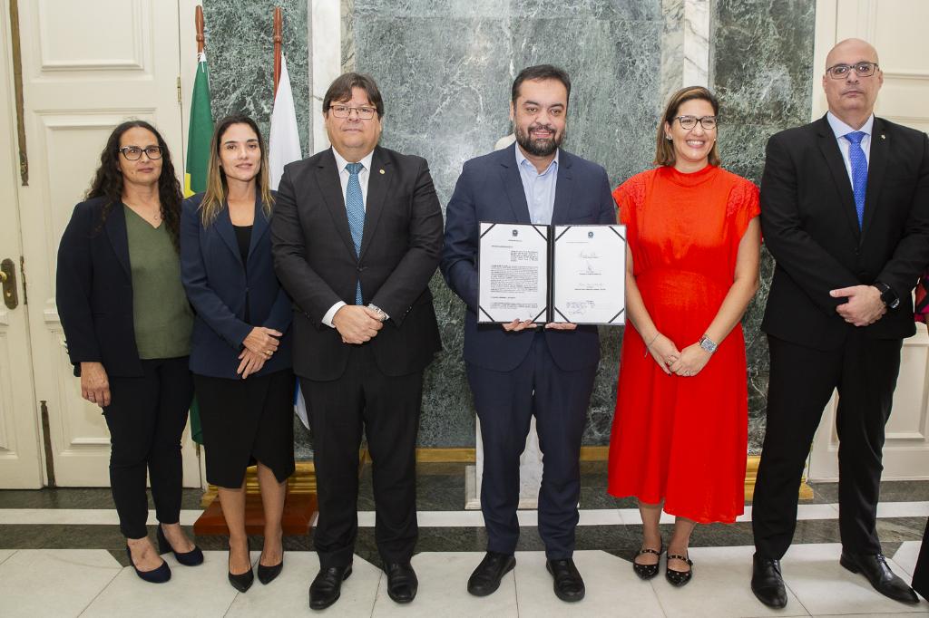 Participaram da cerimônia de assinatura do convênio as promotoras de Justiça Adriana Lucas e Raquel Madruga; a diretora-geral de Polícia da Capital, delegada Raissa Maria dos Santos Celles; o oficial de Proteção do UNICEF, Marcos Kalil; o subsecretário de Relações Internacionais. Bruno Costa; e o subsecretário de Estado de Desenvolvimento Social e Direitos Humanos, Anderson Coelho.
