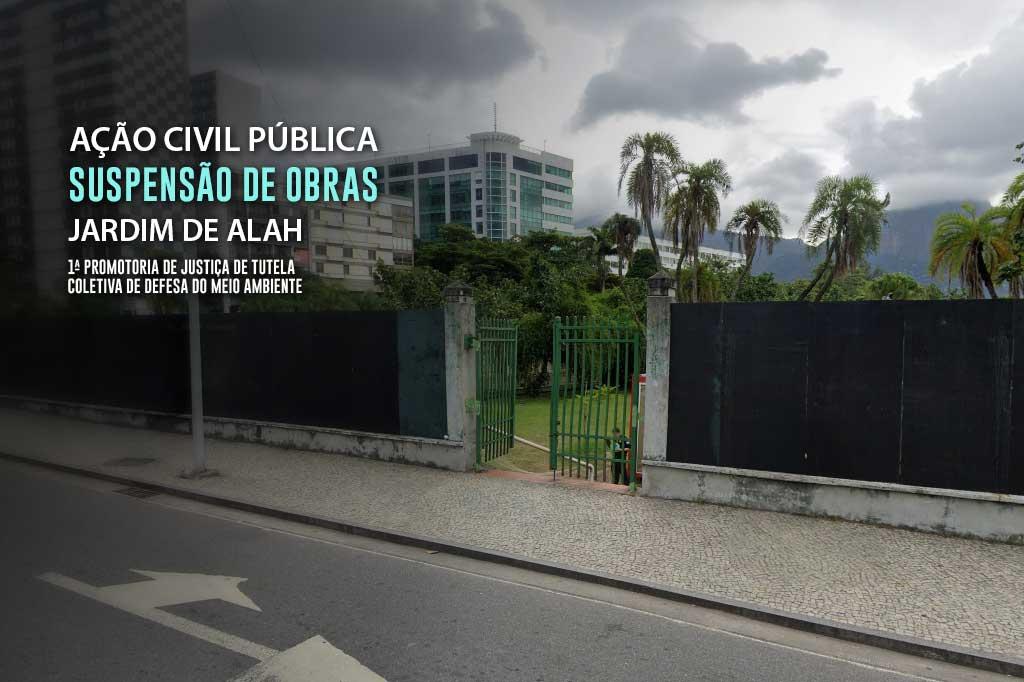 O Ministério Público do Estado do Rio de Janeiro (MPRJ) peticionou, nesta terça-feira (25/02), no âmbito da Ação Civil Pública para suspender as obras de construção de um shopping center horizontal no Jardim de Alah, na Zona Sul da cidade, requerimentos para apreciação do Juízo no processo. De acordo com a ACP, ajuizada pela 1ª Promotoria de Justiça de Tutela Coletiva de Defesa do Meio Ambiente, o espaço é reconhecido como patrimônio histórico e tombado pelo município e corre o risco de ter sua paisagem e estrutura irreversivelmente alteradas pelo empreendimento. A ação foi movida contra o Município do Rio de Janeiro, a Companhia Carioca de Parcerias e Investimentos (CCPAR), o consórcio Rio Mais Verde e a Accioly Participações.
