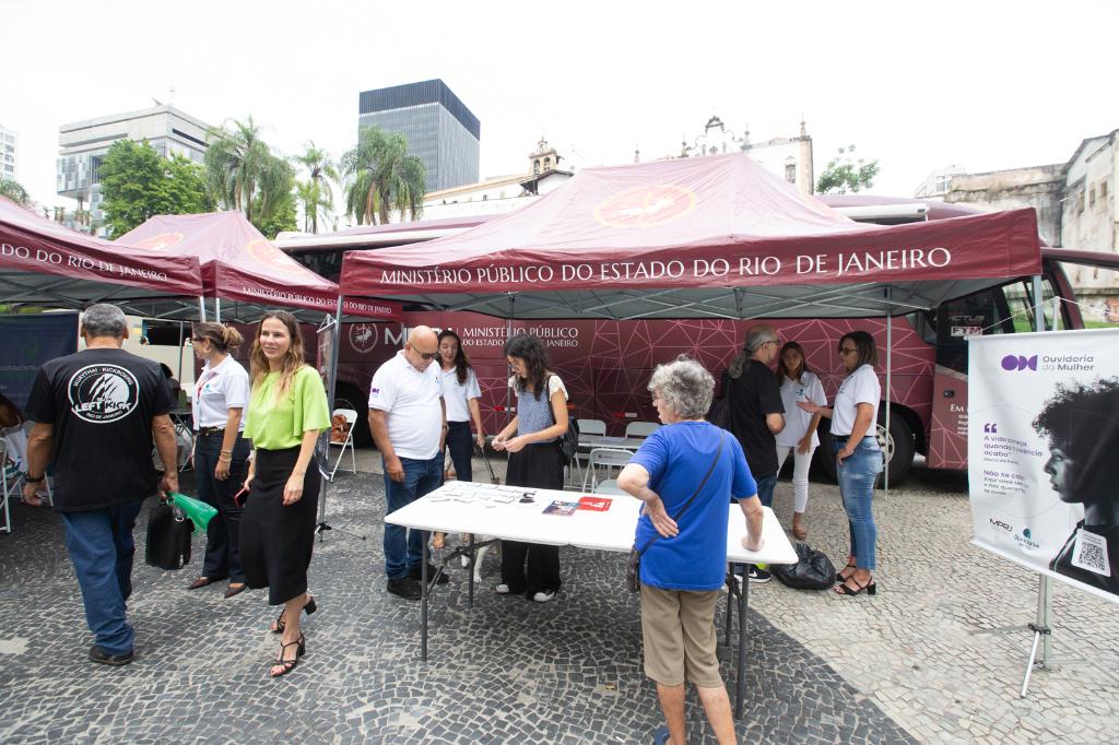 O Ministério Público do Estado do Rio de Janeiro (MPRJ) promoveu, nesta segunda-feira (31/3), uma edição especial da Ouvidoria Itinerante e da Ouvidoria da Mulher/MPRJ no Largo da Carioca, encerrando as ações do mês da mulher. O atendimento ao público foi realizado das 9h às 15h, com estrutura composta por ônibus e tendas.