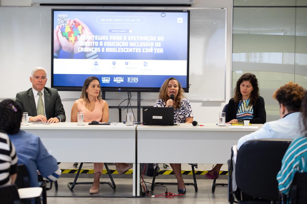 O Instituto de Educação Roberto Bernardes Barroso do Ministério Público do Estado do Rio de Janeiro (IERBB/MPRJ) promoveu, nesta segunda-feira (26/05), o evento “Estratégias para a Efetivação do Direito à Educação Inclusiva de Crianças e Adolescentes com TEA”, com transmissão online e interpretação em Libras. O evento foi organizado conjuntamente pela Comissão Permanente de Estudos sobre Direito das Famílias, Infância e Juventude do IERBB (CPE Infância) e pelo CAO Educação/MPRJ. A abertura contou com a presença da promotora de Justiça Raquel Madruga, subcoordenadora do CAO Infância e Juventude/MPRJ – área não infracional; da coordenadora do CAO Educação/MPRJ, Bianca Mota; da subcoordenadora do CAO Cível e Pessoa com Deficiência/MPRJ, Viviane Alves; e do promotor de Justiça Alexandre Joppert, vice-diretor do IERBB/MPRJ.