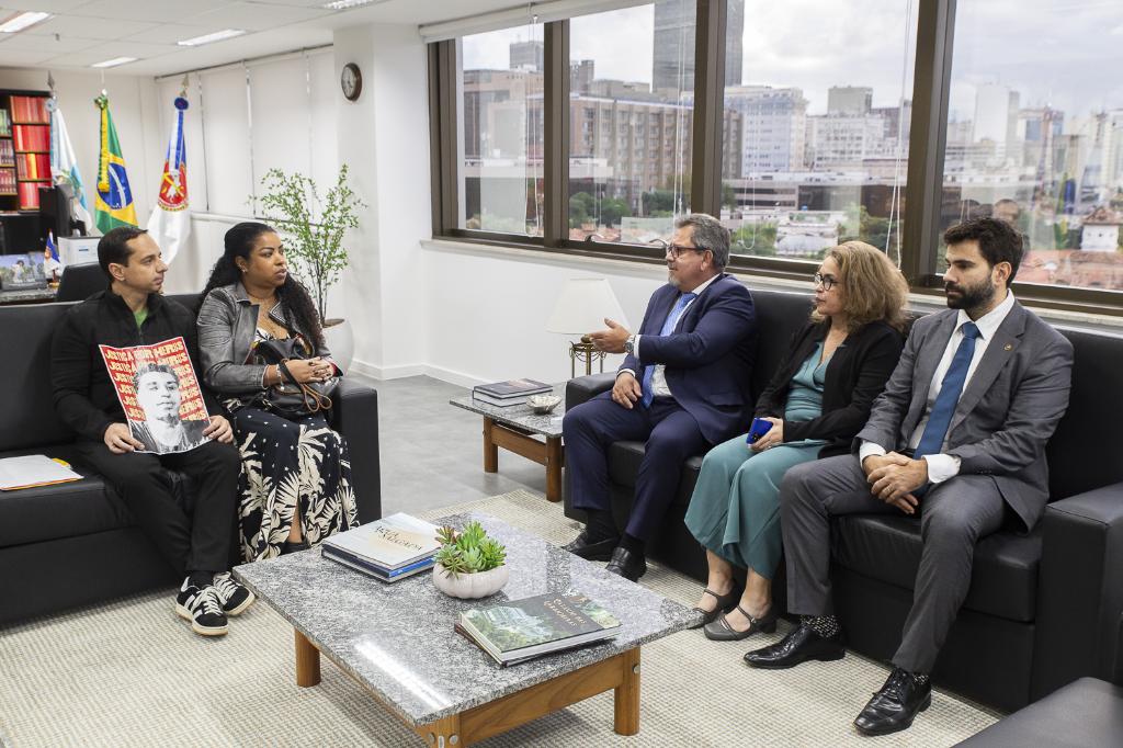 Mônica Guimarães Mendes e Fernando Guimarães, pais de Herus Guimarães Mendes, morto durante uma operação da Polícia Militar, na Comunidade Santo Amaro, no último sábado (07/06), foram recebidos pelo procurador-geral de Justiça, Antonio José Campos Moreira, nesta terça-feira (10/06), na sede Ministério Público do Estado do Rio de Janeiro (MPRJ).