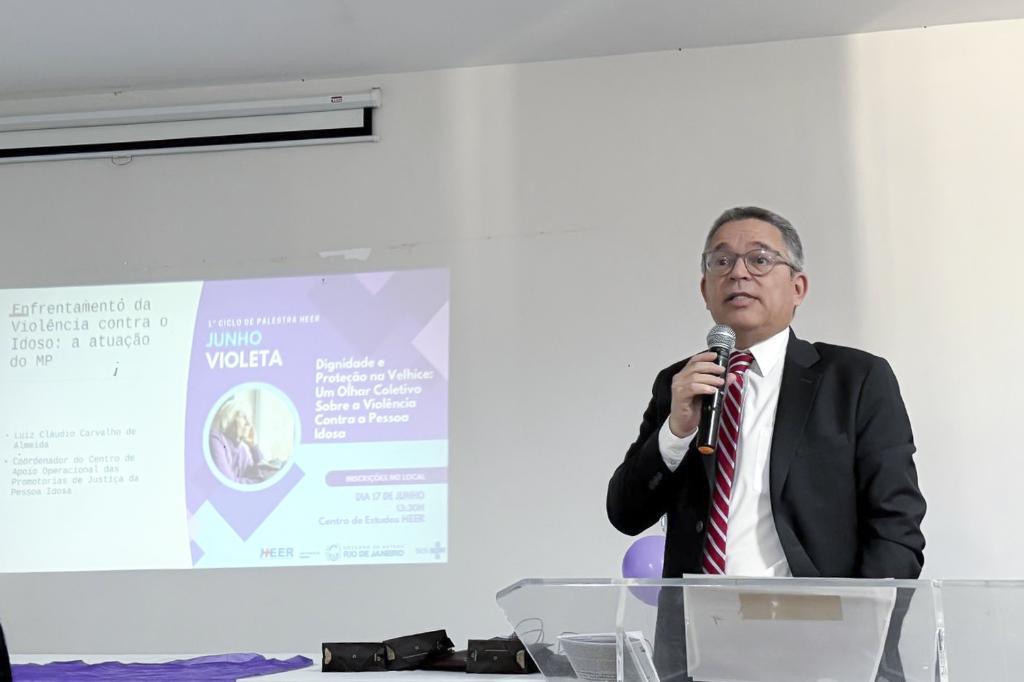 Entre os temas debatidos durante o ciclo de palestras, os desafios e avanços nas políticas públicas de saúde no Rio de Janeiro, as dificuldades no atendimento e na articulação da rede de proteção social, os impactos emocionais e a importância do cuidado psicológico da pessoa idosa e família. Luiz Cláudio Carvalho de Almeida falou sobre a atuação do Ministério Público do Estado do Rio de Janeiro (MPRJ) no enfrentamento à violência contra a pessoa idosa: